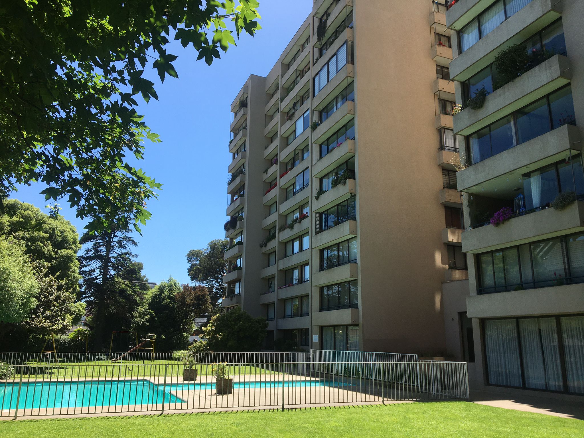 Encantador departamento de tres dormitorios y dos baños mas servicios completos. Cocina espaciosa y cómoda. El conjunto consiste en dos torres y considera quincho y piscina muy soleada.